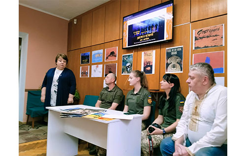 Директор бібліотеки Ольга Романюк розповіла про роботу бібліотеки під час війни, особливо наголосила на акції, до якої можуть долучатися усі – «Книжки_вслід» зі збору та відправки українських книжок у міста Європи, де знайшли прихисток тисячі українців.
