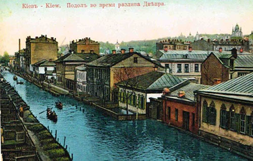 На світлинах того часу та старовинних листівках можна побачити, як містяни пливуть у човнах вулицями Подолу, що перетворилися на справжнісіньку Венецію.