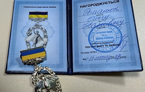 Під час святкового пісенно-музичного заходу 11 листопада, яким привітала з 80-річним ювілеєм бібліотеку і велике коло її друзів та партнерів відома громадська діячка, письменниця, мисткиня і волонтерка Світлана Кас’яненко, Головою Національної Ради Жінок України Людмилою Порохняк-Гановською було вручено Срібний орден НРЖУ «Поступ миру і любові» директорці бібліотеки Ользі Романюк.
