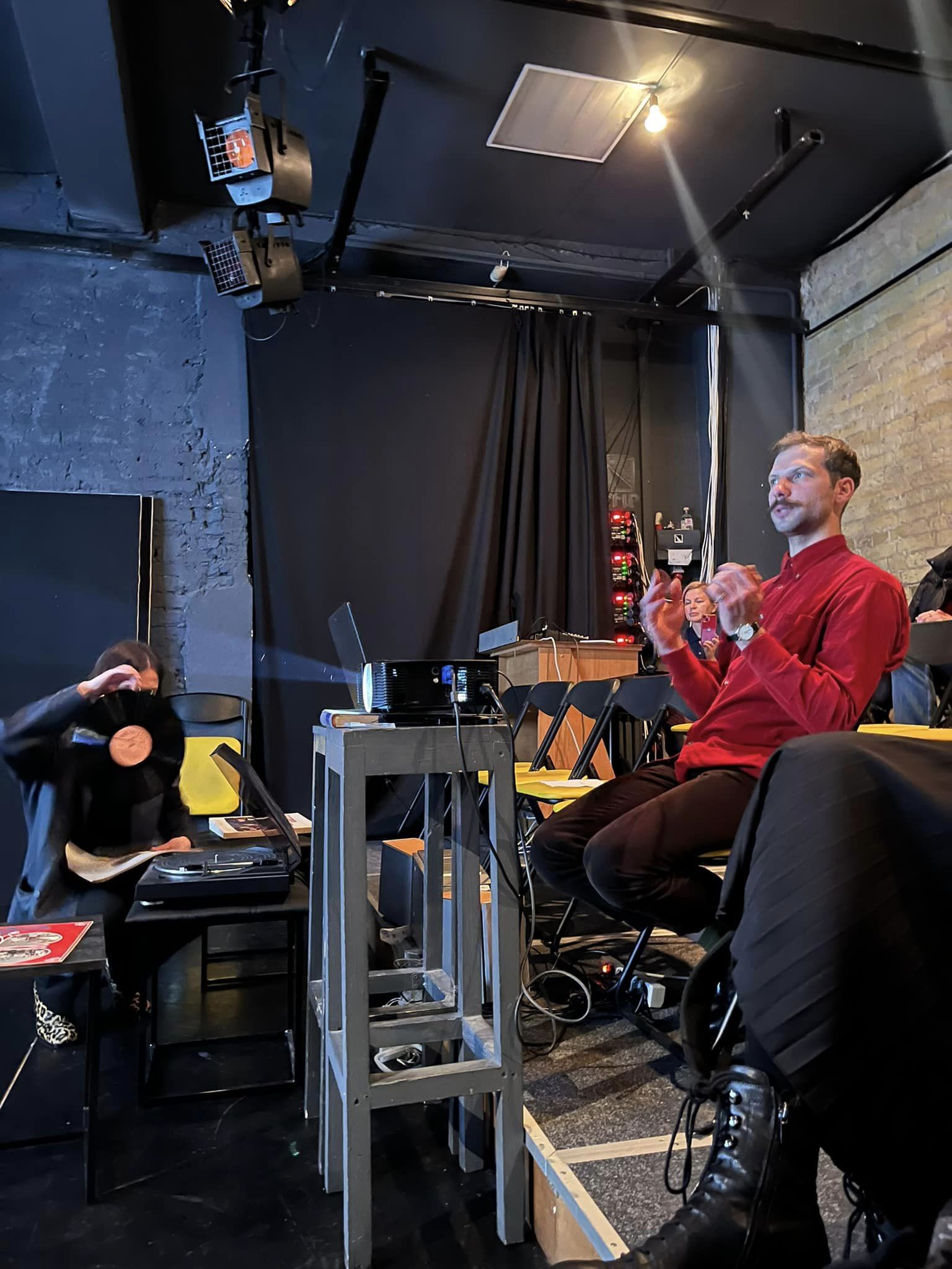 Звідки взялися радянські видання традиційної музики на вінілі, як вона звучала, що і на що записували дослідники в експедиціях. Було щемко, весело та сумно водночас. Наприкінці розмови лектори подарували відділу мистецтв для його медіатеки платівку з записом троїстої музики! Також глядачам було презентовано багату колекцію платівок відділу