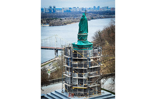 Крім того, були завершені роботи на пам’ятнику княгині Ользі. Мішки, що захищають пам’ятник княгині Ользі, пофарбували у кольори прапора.