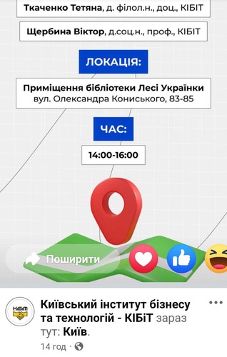 Завершальний день Тижня науки організованого Київським інститутом бізнесу та технологій (КІБіТ) пройшов у приміщенні бібліотеки. У висвітленні теми гуманітарного блоку “Бібліотеки в цифровому інформаційному просторі” взяв участь завідувач відділу бібліотечних комунікацій Віталій Білозір. Студенти презентували свої дослідження, серед яких великий інтерес викликала тема використання штучного інтелекту для комунікації. Зацікавленість цією темою матиме продовження, адже в наших партнерських планах – проведення тематичної сесії для працівників публічних бібліотек міста.