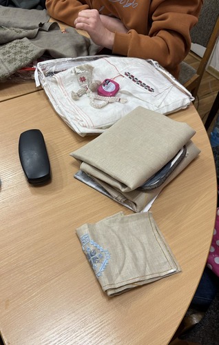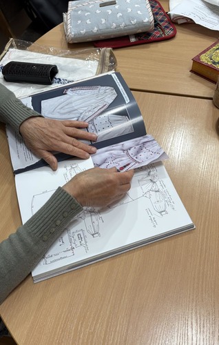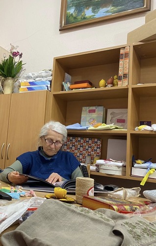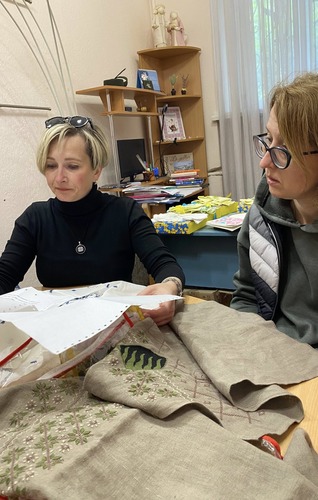 На Жіночому колі Тані Срібної 8 травня зібрались жінки не просто з голкою й ниткою в руках. Як і щочетверга в відділі краєзнавства шиється і вишивається нитками памʼяті і надії наш жіночий досвід — той, що пережив Першу світову війну, і той, що живе, чекає і вірить в Перемогу тепер, у дні новітньої боротьби. Наші прабабусі шили сорочки для своїх чоловіків, що йшли на фронт, вишивали молитви в кожному стібку, трималися за життя, коли все довкола було зруйновано.