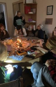 В світлі найрізноманітніших ліхтариків вишиваємо оберегові речі, створюємо лялечки-мотанки, багато розмовляємо і тримаємо фокус уваги на тому, що допомагає нам втриматись, робити те, що від нас залежить і просто продовжувати жити в улюбленій справі.