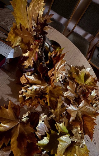 13 листопада на Жіночому колі Тані Срібної у відділі краєзнавства вирувала золота осінь, яка плавно перетікає в новорічний декор і екоіграшки. Лора Савчук і Елеонора Хоменко підготували майстер-клас зі створення екологічно безпечних, унікальних і неповторних прикрас до свят, що наближаються. Золотили засушене листя, створювали свої авторські композиції.