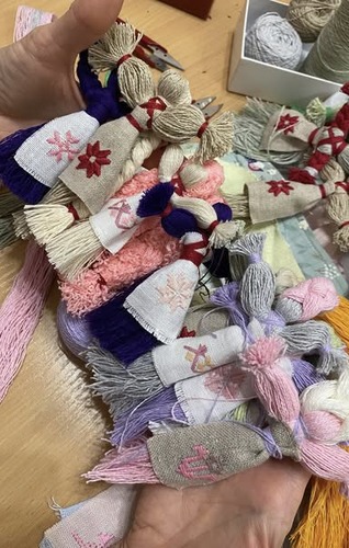 Минулого четверга 3 квітня на Жіночому колі Тані Срібної створили цілий оберемок оберегових лялечок-мотанок, прикрашених фартушками з ручною вишивкою за розмовами в теплому колі і з добрими побажаннями сил, здоровʼя, всіляких гараздів тим, кому вони призначені – нашим оборонцям, Лицарям Світла і Воїнам Духу – захисникам і захисницям України.